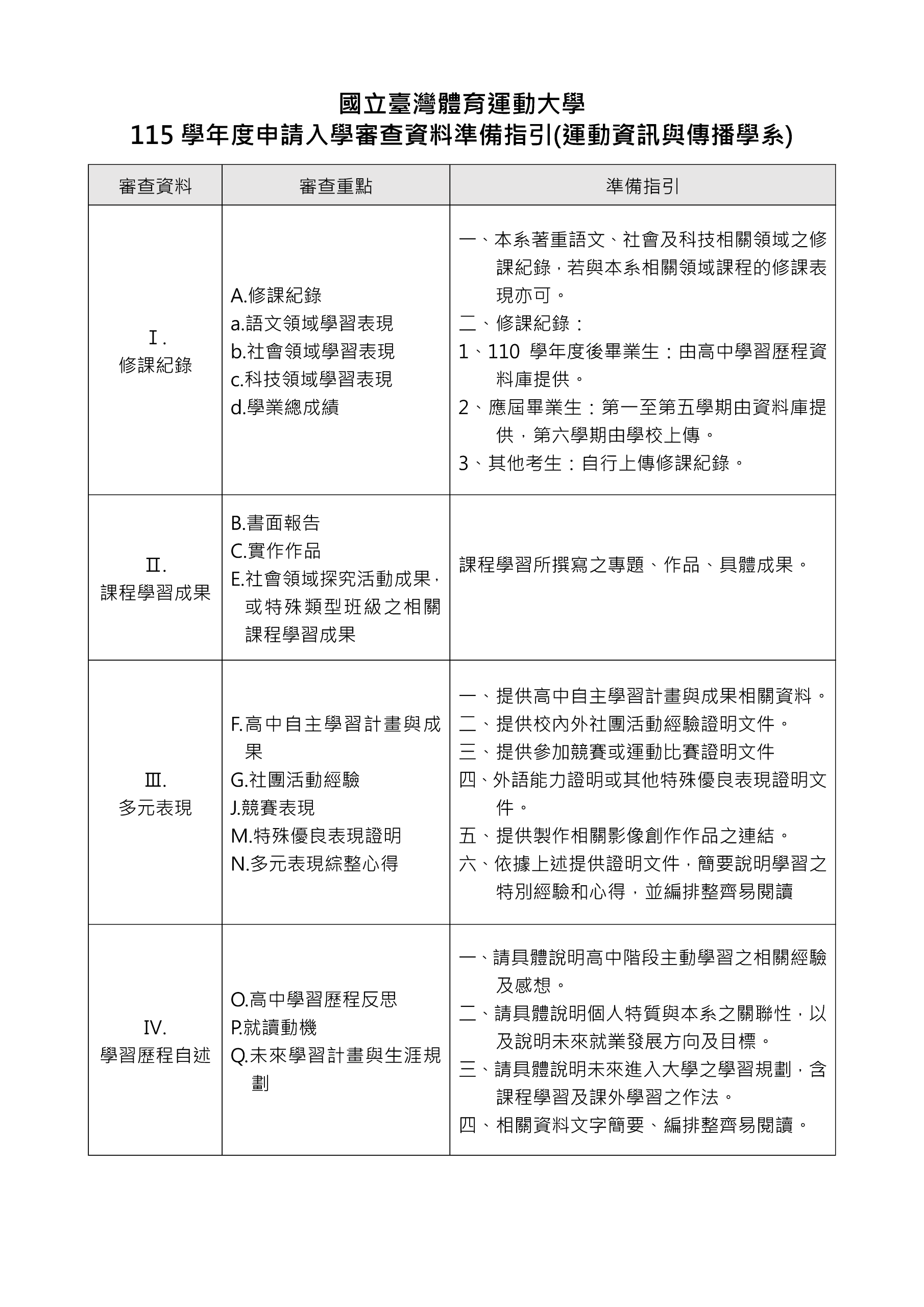115學年度「運動資訊與傳播學系」申請入學資訊